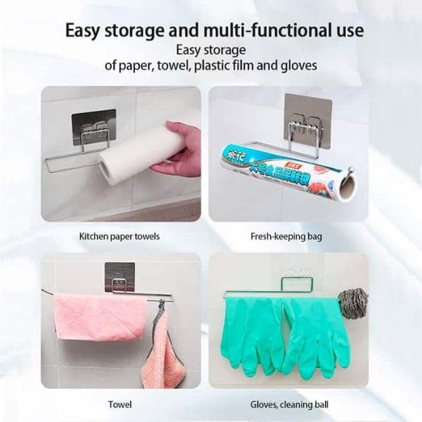Oslobodite prostor u kuhinji i kupatilu! Držač za papirne ubruse može se montirati na bilo koju ravnu površinu, uključujući zidove, nameštaj ili pločice!