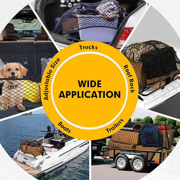 Idealna za dnevnu kupovinu, porodična putovanja, pribor za kućne ljubimce, alat, opremu za kampovanje, sportsku opremu, igračke za plažu ili čak za organizaciju rasutih predmeta kod kuće. Jedna mreža – beskrajne mogućnosti. Pogodna za automobile, SUV-ove, kombije, prikolice, krovne nosače, pa čak i čamce.