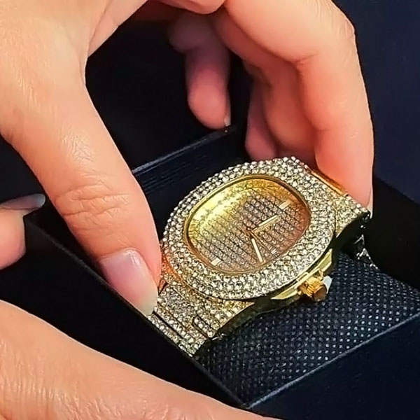 Hiljade svetlucavih kristala pretvaraju ovaj sat u fascinaciju. To nije samo sat – to je hrabar izraz luksuza i elegancije.