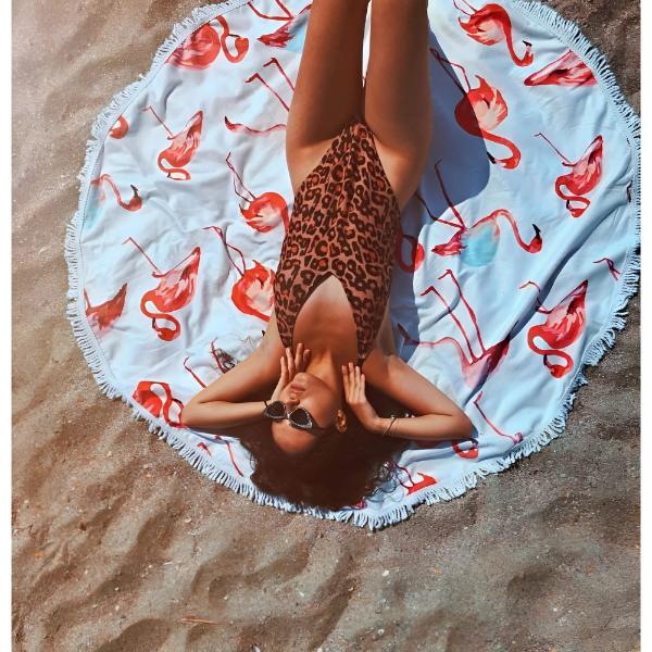Okrugli peškir je namenjen za opuštanje na plaži ili pored bazena, ali može da se nosi i vezan oko tela kao modni dodatak.
