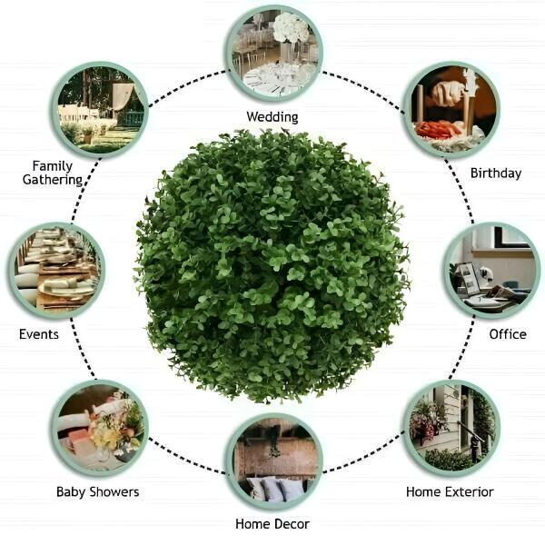Dodajte dašak zelenila svakom prostoru bez potrebe za održavanjem. Ove lopte od veštačkih biljaka donose eleganciju i šarm prirode gde god da krenete. Bilo da je u pitanju vaš dom, kancelarija ili događaj, oni pružaju elegantan, svež izgled koji traje. Nema potrebe za prirodnim svetlom ili savršenim uslovima za uzgoj – samo zadivljujući dekor bez napora.