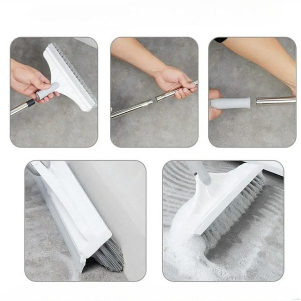 Dizajn u obliku slova V čisti fuge, lajsne i uske uglove preko kojih standardne metle samo prelaze. Ravna strana rešava površine u kupatilu, prozore i otvorene podove – sve jednim alatom.